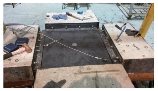 The problem of boundary distortion can be avoided by using the difference between the damaged and undamaged mode shapes. Abdulkareem et al. [81] employed the 2D CWT to decompose the mode shape difference. The singular peaks in wavelet coefficients near the support resulted from the sudden increase in stiffness due to the support. By considering the mode shape difference, the sudden change in stiffness around the support could be canceled out. Thus, it was possible to identify the damage near the boundary. In the FE model, the damage was modeled by local thickness reduction. In the experiment, a fully clamped steel plate was studied (see Figure 12). Damages were introduced to the middle, the top, and the corner of the plate, respectively. The damaged area was approximately 0.5% of the plate area, and the damage was manufactured by milling off 62.5% of the plate thickness. Using the wavelet coefficients of the difference of the first mode shape, the damaged areas were identified with reasonable accuracy.