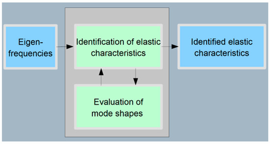 In studies of structural mechanics, modal analysis, presented in this paper, is an important tool for analyzing the vibration of an object and its frequencies. In modal analysis, different modes of vibration and the frequencies that generate them are considered. The study covers the nondestructive identification of the elastic characteristics of materials, which involves stochastic algorithms and the application of reverse engineering (i.e., the comparison of reference eigenfrequencies with the results of mathematical models). Identification is achieved by minimizing the objective function—the smaller the value of the objective function, the higher the identification accuracy obtained. By changing the parameters of a material’s mathematical model during identification, certain (usually higher order) modes can change places in a natural frequency spectrum. This leads to the comparison of different order eigenfrequencies, slow convergence and poor accuracy of the identification process. The technique involved in this work is the mode-shape recognition of a specimen of material with an “incorrect” set of elastic properties. The results prove that the identification accuracy of a material’s elastic properties can be increased if an “incorrect” set of elastic properties is removed from the identification process. The research covers only numerical research, with a physical experiment simulation.