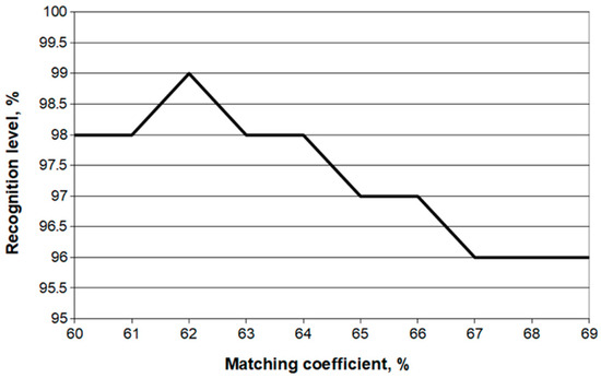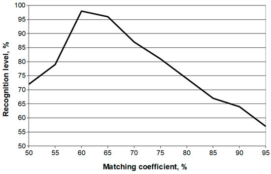 The simple match coefficient was used to recognize the mode shape; this shows how many nodes of finite element (FE) mesh Z axis displacements coincide with the corresponding points of the reference. The value of this coefficient was determined experimentally, and the most accurate recognition was found at 62% of the SMC value.