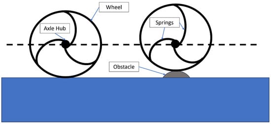 Figure 1). As it is very common for a MWU to perform a wheelie when performing a curb drop or traversing a threshold, the in-wheel suspension systems are more effective than front caster suspension in these scenarios. Additionally, these wheels have a quick-release axle housing, which is common to many wheelchair makes and models, enabling them to be retrofitted to an existing quick-release wheelchair axle frame. There is limited research on how well these systems do at attenuating shock and vibration and improving rider comfort. The Loopwheels Urban (Loopwheels Urban, Jelly Products Ltd., Nottinghamshire, UK), a design encompassing three “C” shaped carbon fiber springs [