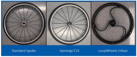 Therefore, the goal of this study was to determine the effects of in-wheel suspension on WBV and ride comfort in experienced MWUs. As certain materials used to construct wheelchair wheels may exhibit dampening properties, we also included a Spinergy CLX (CLX, Spinergy, San Marcos, CA, USA) as another condition in our test protocol, which uses carbon fiber on the rim and Zylon (PBO, poly(p-phenylene-2,6-benzobisoxazole)) spokes [