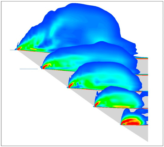 In the formula, is the control variable of the turbulence equation, is the laminar viscosity coefficient, is the local rotation rate, d is the closest distance to the object surface, Δ is the local grid scale, and the rest are empirical constants. When d « Δ, the above equation is equivalent to the RANS simulation; when d » Δ, it is equivalent to the Smagorinski large eddy simulation. The purpose of introducing the switch function is to eliminate the disadvantage of the calculation results in the RANS and LES boundary area being greatly affected by the computational grid [21]. An effective construction method is shown in Formula (8).