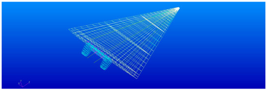 Next, buffet response calculation was carried out for the elastic model of the variant tail wing while considering that the fuselage and wing of the aircraft are rigid, while the tail wing is elastic. The finite element model of the tail wing structure is shown in Figure 10.