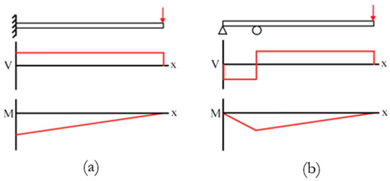 Shear and Bending Moment Shown in Red of (a) Cantilever Beam and (b) Overhanging Beam.
