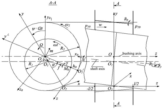 Shaft and bushing rotate around their own axes with the frequencies of their own rotation . The axes themselves rotate around the fixed center O with precession frequencies and also perform radial and angular oscillations.