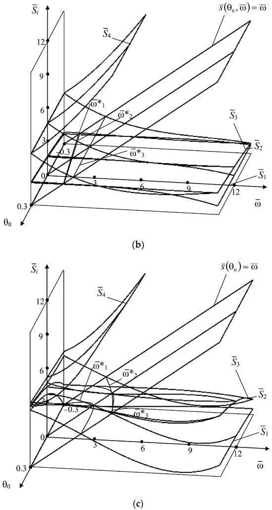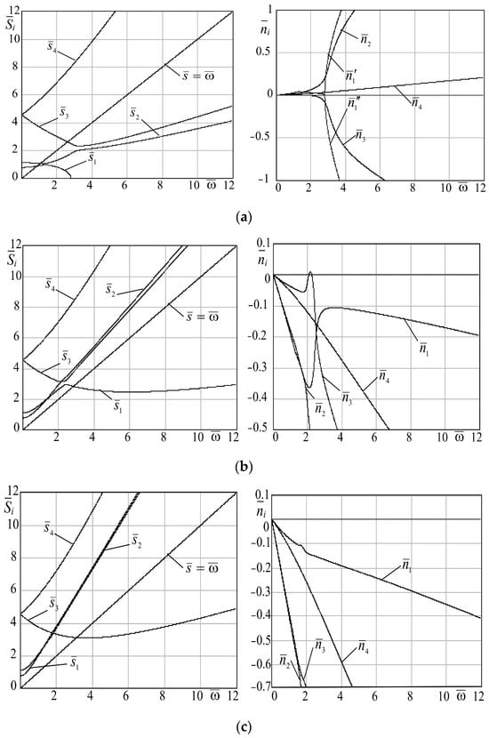 Therefore, the external influence is only the rotation speed, and the rotor in the seals acquires greater dynamic rigidity (Figure 4). In turn, in each of the figures, the dependences of natural frequencies on the parameter of the annular gap taper of slotted seals in the range of and the rotational speed are plotted. The results of the analysis of frequency diagrams are presented below.