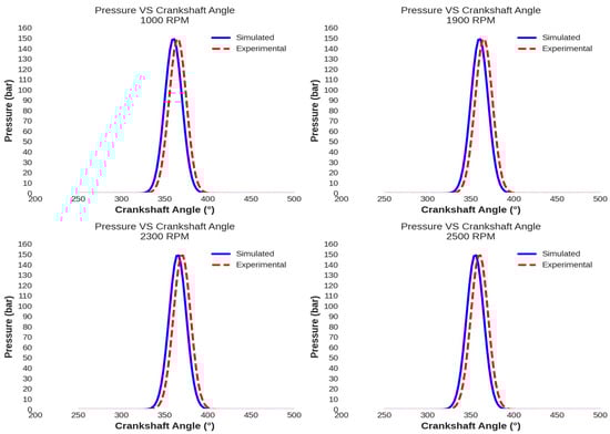 The thermodynamic model was validated by comparing the pressure curves within the cylinder, while the computational model of torsional vibration used the nominal engine output torque curve, both provided by the aforementioned engine manufacturer.