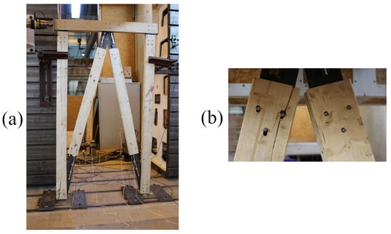 (a) Testing bracing frame structure; (b) wood–metal joints.