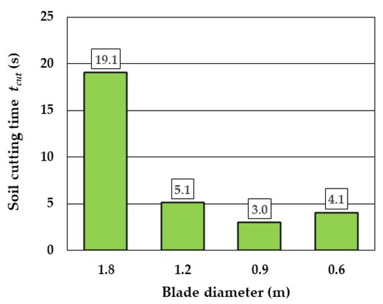 The soil cutting time tcut, calculated with Equation (28), is shown in the histogram of Figure 10. The assumption underlying the calculation of the cutting time with Equation (28) is the absence of asperities, such as stones or roots, along the semicircular path of the blade.