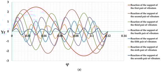 Vibratory machines occupy an important place in a number of technological processes, for example, in operations of sorting and separating various materials [31] into fractions, inter-operational transportation [32,33], compaction and molding [31,34,35], immersion of structural elements into the ground and their extraction from the ground [22,36,37], cutting [38,39], and destruction and digging [40,41]. In the building industry, vibration machines are used to produce building materials and perform construction and road construction work. In vibration machines, the driving force of the working equipment is the ‘driving force’. The driving force serves to periodically move the structural elements of the machines with a certain amplitude and frequency and is characterized by the magnitude, modulus or amplitude value, direction or, line of action, point of application, and the nature of the behavior or position of the line of action in time [42,43,44].