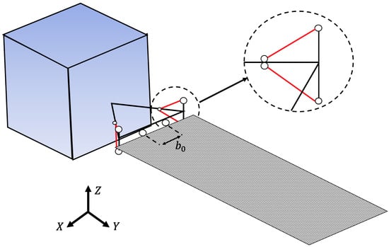 where and are the unknown and known displacement vectors [40], respectively, and is the global piezoelectric force vector. It is worth noting that structural damping has not been included in Equation (11) in order to consider the worst design scenario for vibration-damping systems. Therefore, considering that non-homogeneous boundary conditions are applied to the FE model to account for the satellite’s body movements as disturbances to the flexible structure, the governing equations are expressed as [41]