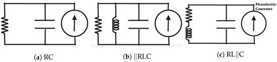 The transfer functions of the studied circuits, which relate the input current through the piezoelectric stack to the output applied voltage, are defined as follows [45,46]