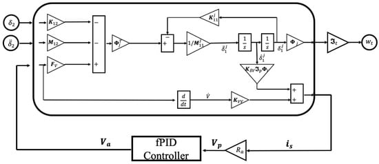 where the parameters and represent the proportional gain and integral time constant of the fPID controller, while the filtered derivative term is obtained by solving the following first-order differential equation