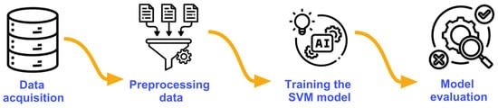 Figure 1 illustrates the proposed method, which consists of four steps: data acquisition, data preprocessing, SVM model training, and SVM model evaluation. The following subsections describe each step.