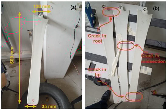 Conditions of the WTB: (a) healthy blade and (b) blades with cracks.