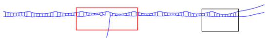 Detail of the OCL position in the end section, for scenario B, showing the longitudinal shift between the CW and MW. Vertical scale is increased for a better view.