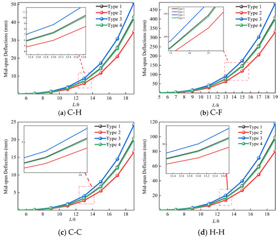 | Boundary Condition | Beam Type | Mid-Span Deflections (mm) | |||||