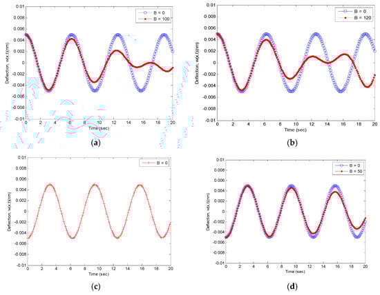 Then, we integrate the obtained equation over the interval (0, L) and apply the stepwise approach of Galerkin’s method, which yields the following:
