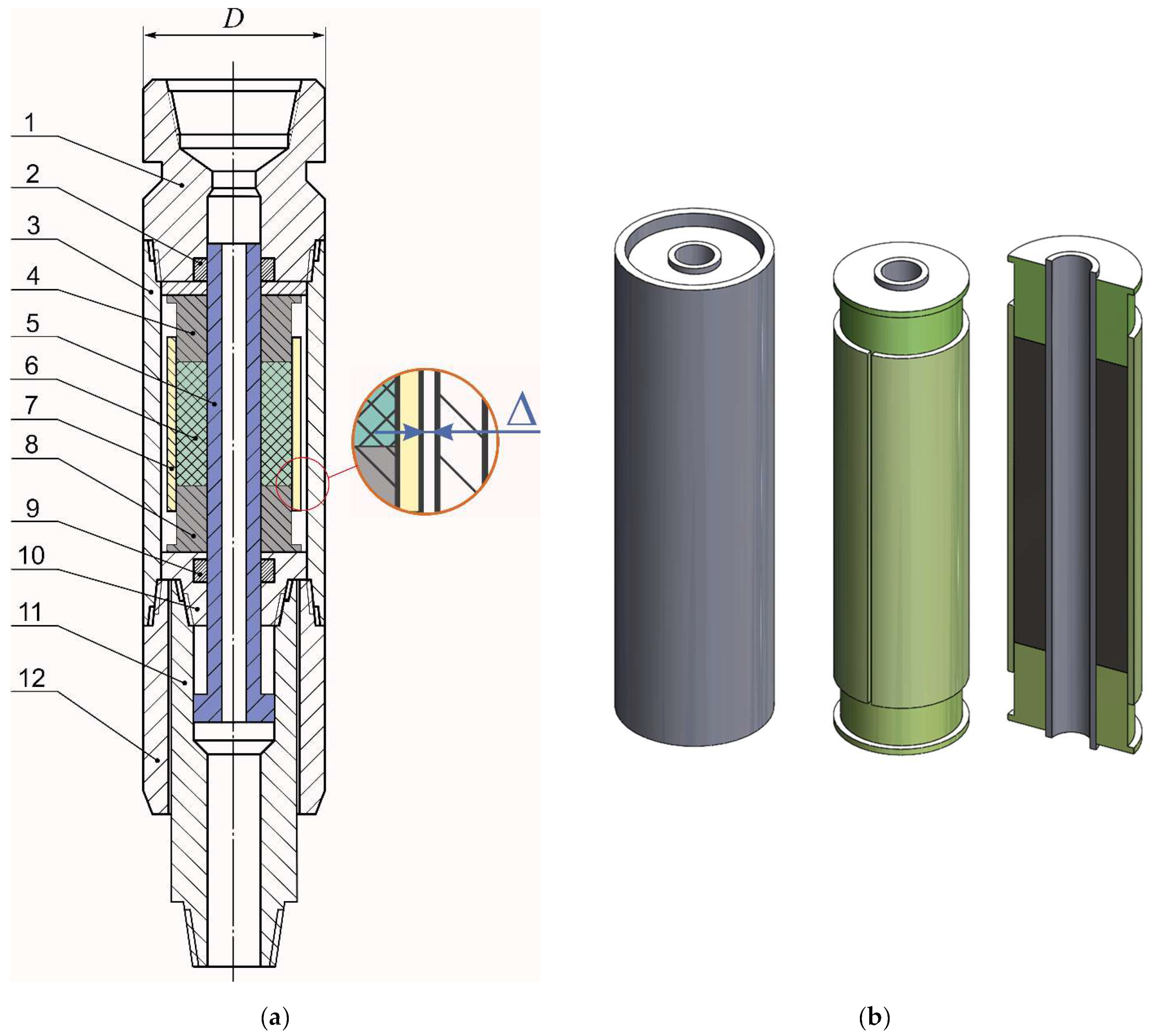 - Velichkovich, A.S.; Popadyuk, I.I.; Shopa, V.M. Experimental study of shell flexible component for drilling vibration damping devices. Chem. Pet. Eng. 2011, 46, 518–524. [Google Scholar] [CrossRef]