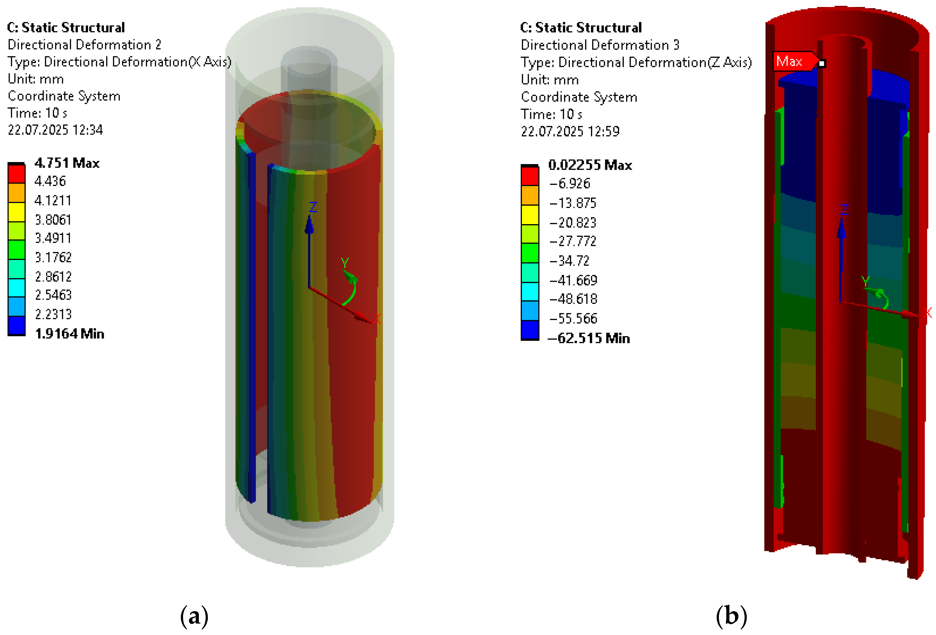 3.1. Operation of the Shock Absorber in Normal Loading Mode (With Unclosed Radial Clearance)