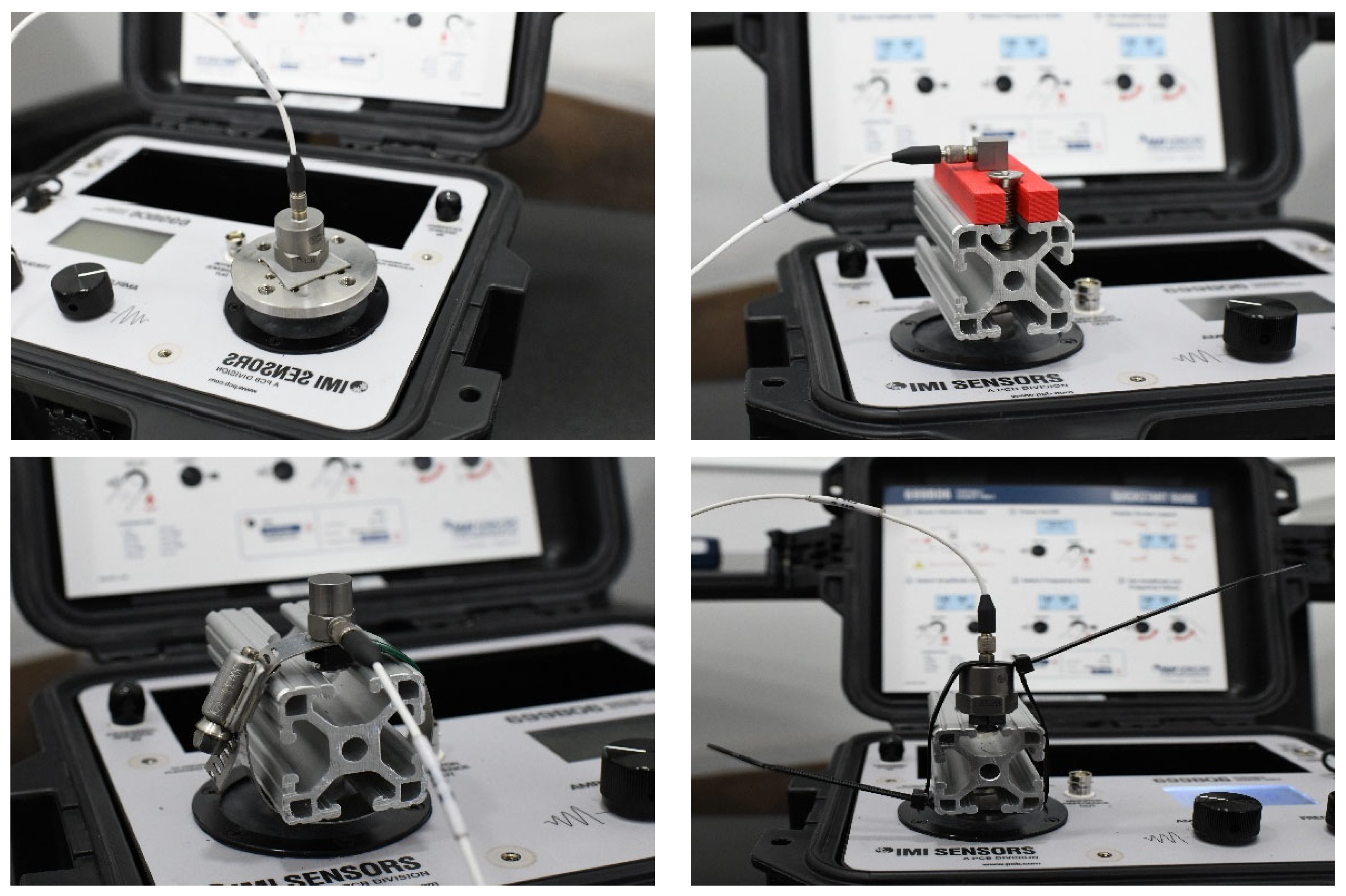 - Miller, A.; Sburlati, D.; Duschlbauer, D. Accelerometer mounting—comparison of stud and magnetic mounting methods. In Proceedings of the Hear to Listen Acoustics, Adelaide—South Australia, Adelaide, Australia, 6–9 November 2018. [Google Scholar]