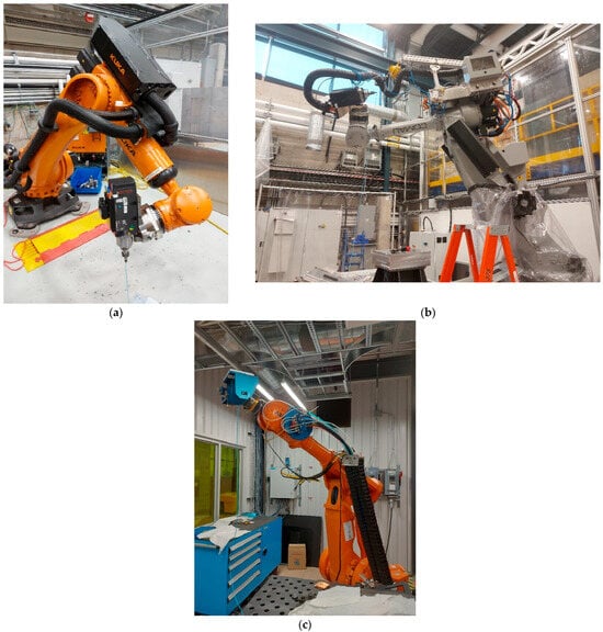 (a) The KUKA KR300 robot manipulator; (b) Comau NJ 650-2.7 robot manipulator; (c) ABB IRB 4400 robot manipulator.