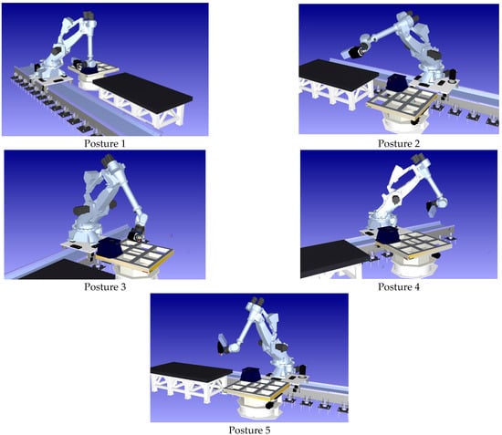 Selected postures of the Comau NJ 650-2.7 robot manipulator used for modal parameter prediction.
