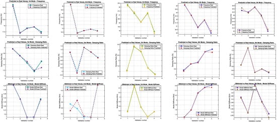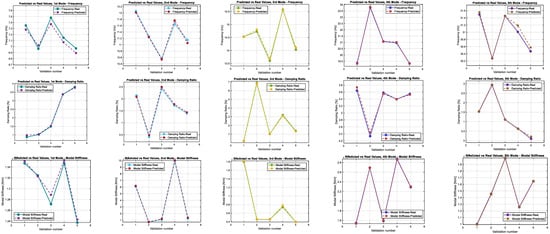 As a result, the final transfer learning model for Robot B can predict modal parameters—including natural frequency , damping ratio , and stiffness —with both stability and accuracy. This balanced strategy leveraged the strengths of the original model while making the necessary adjustments to adapt to differences between robots.