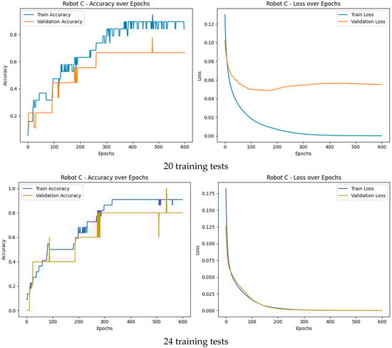 The predictive model of Robot A was previously trained on a relatively large dataset for over 500 epochs with a batch size of 8 (Figure 9).