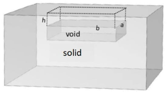 As illustrated in Figure 1, the void damage is modeled as a cuboid with length , width , and depth below the solid surface, whereas the solid above the void can be viewed as a plate of length , width , and thickness .