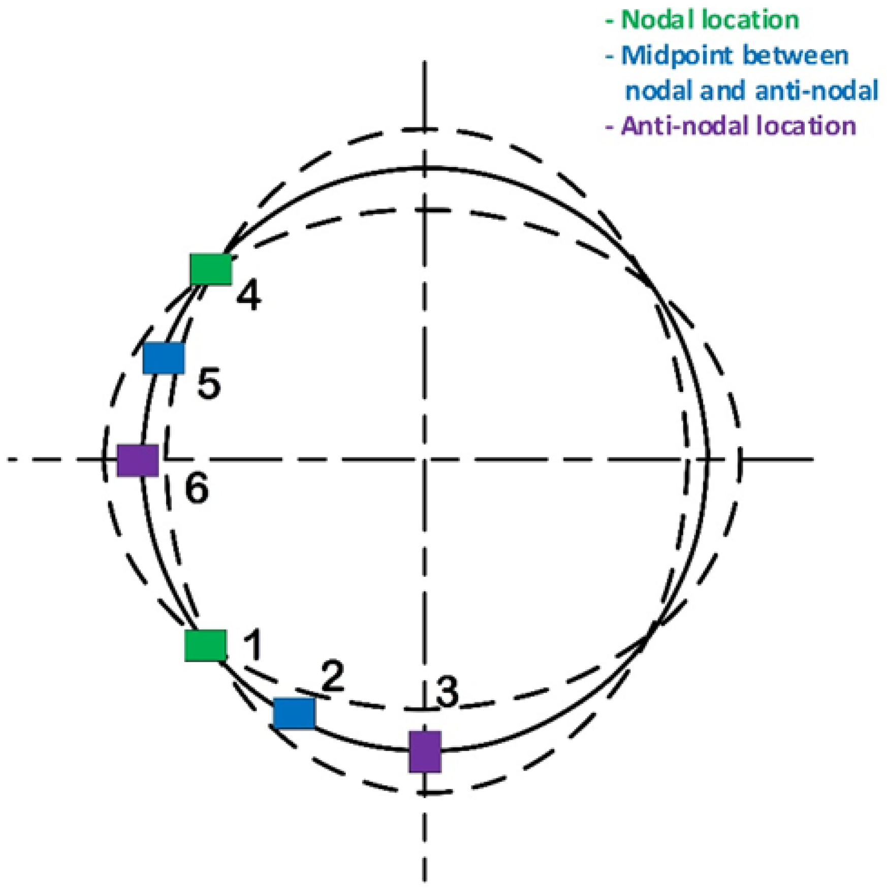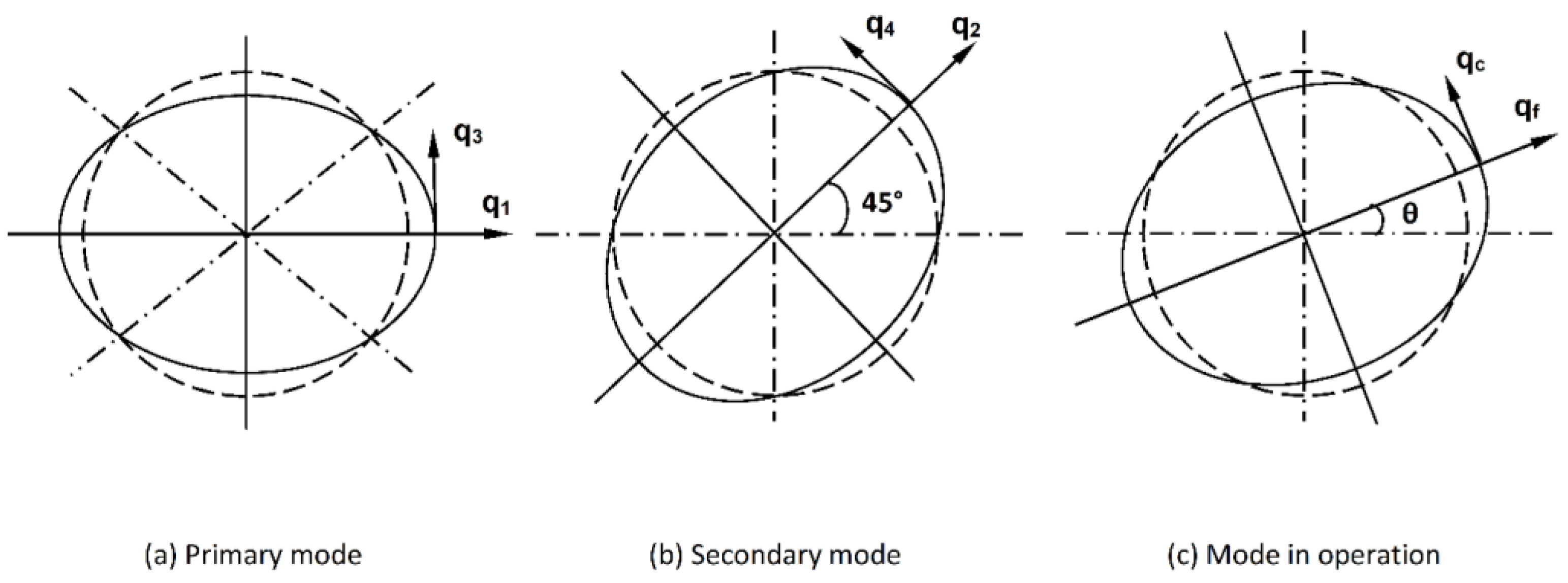 - Shi, Y.; Chen, Y.; Cai, Q.; Zhang, T.; Shen, C.; Cao, H. Research on Frequency Splitting Analysis and Tuning Methods of Six-Antinode Cylindrical Resonator Gyroscope. IEEE Sens. J. 2024, 24, 2568–2576. [Google Scholar] [CrossRef]
