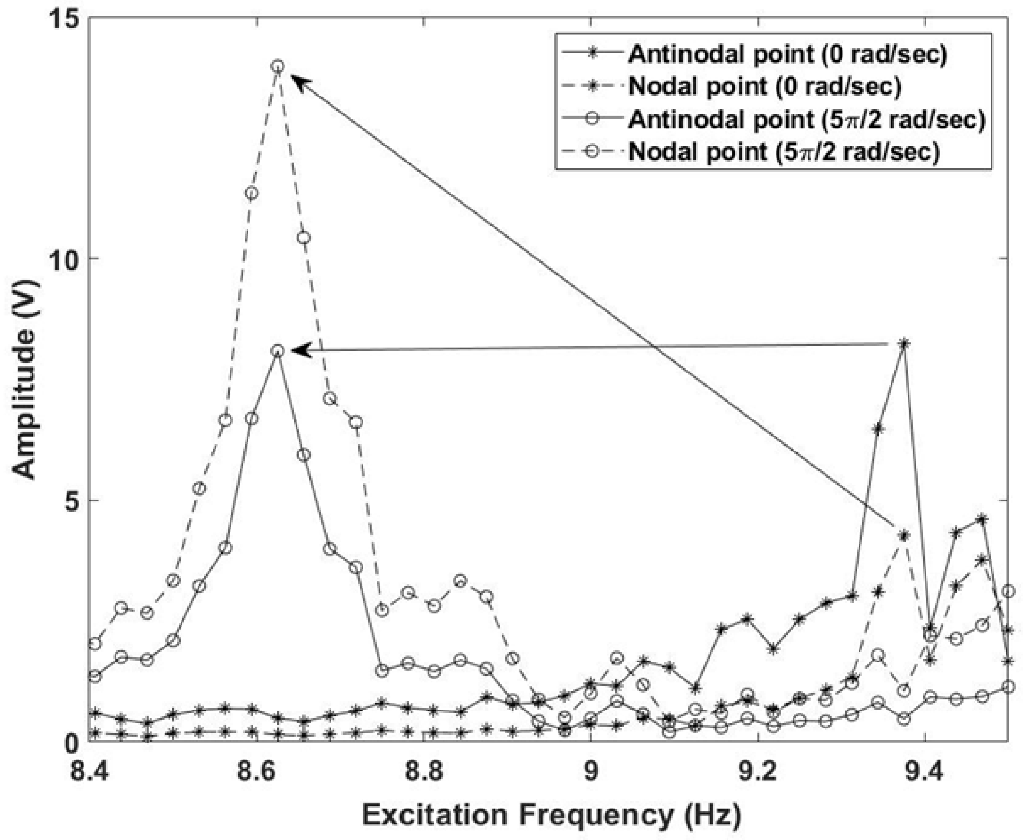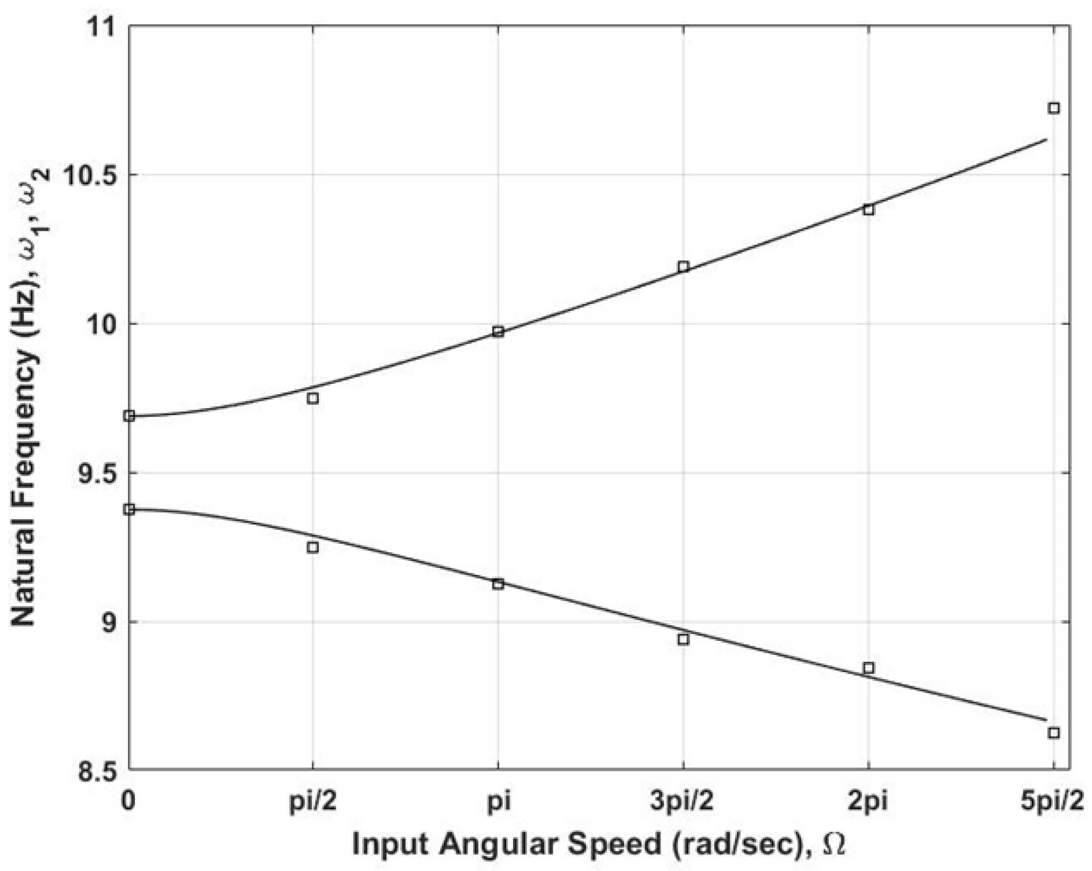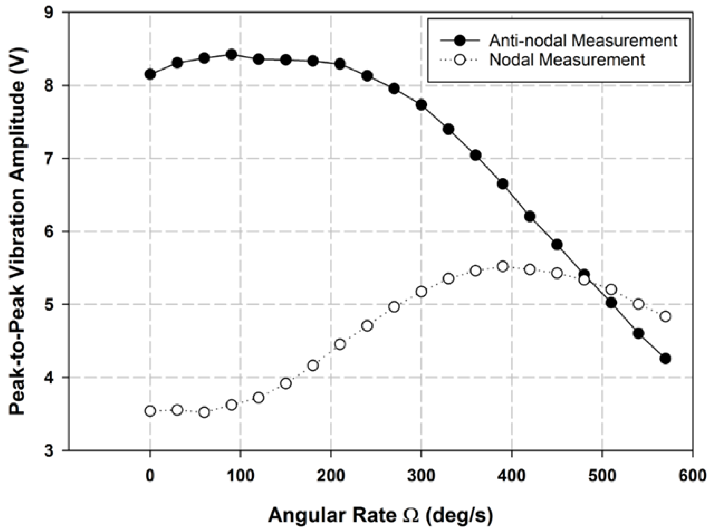 3.1. Experimental Natural Frequency Variation Due to Input Angular Rate