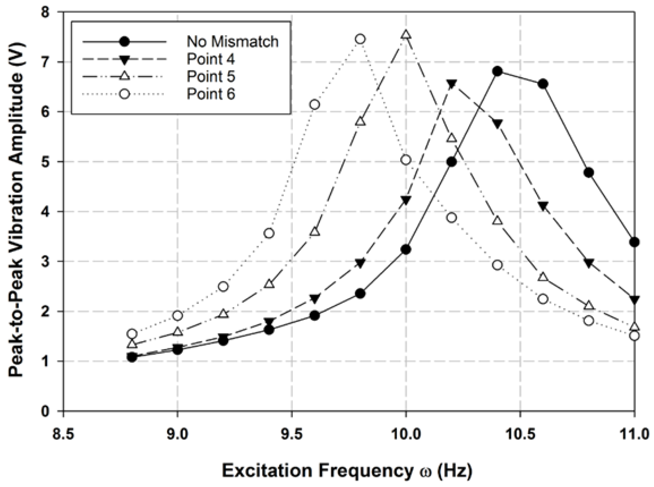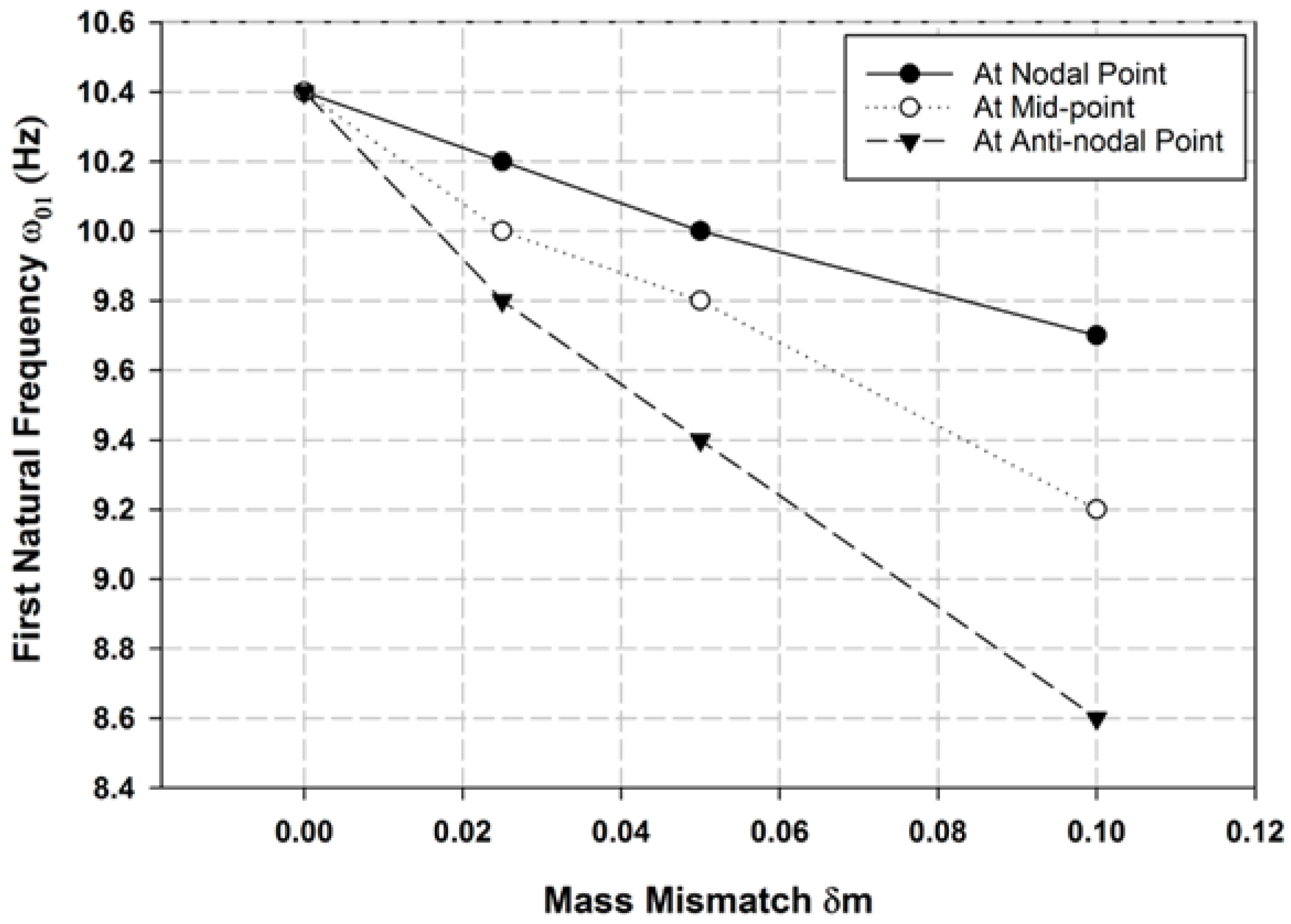 3.3. Natural Frequency Variation Due to Mass Mismatch