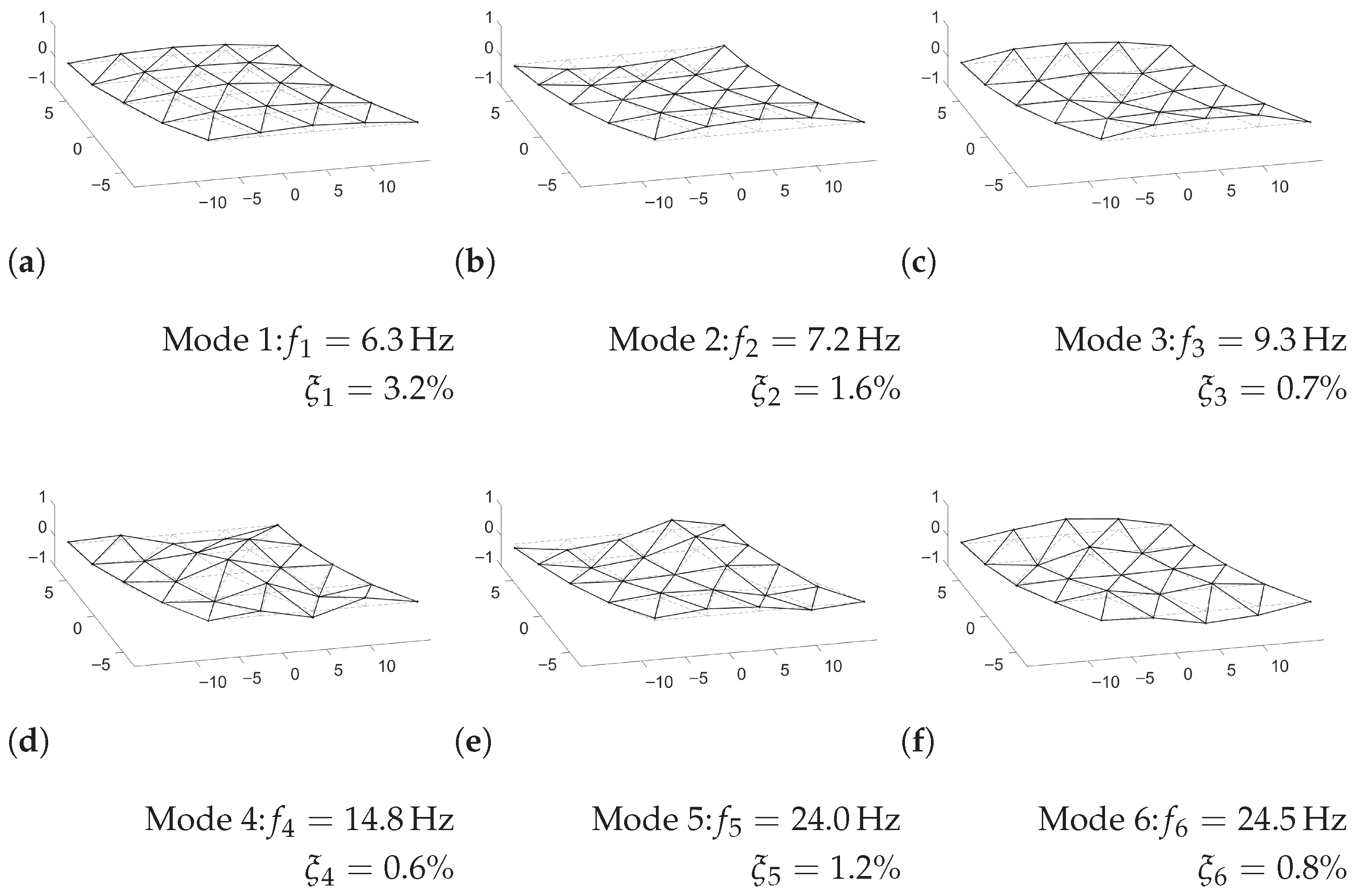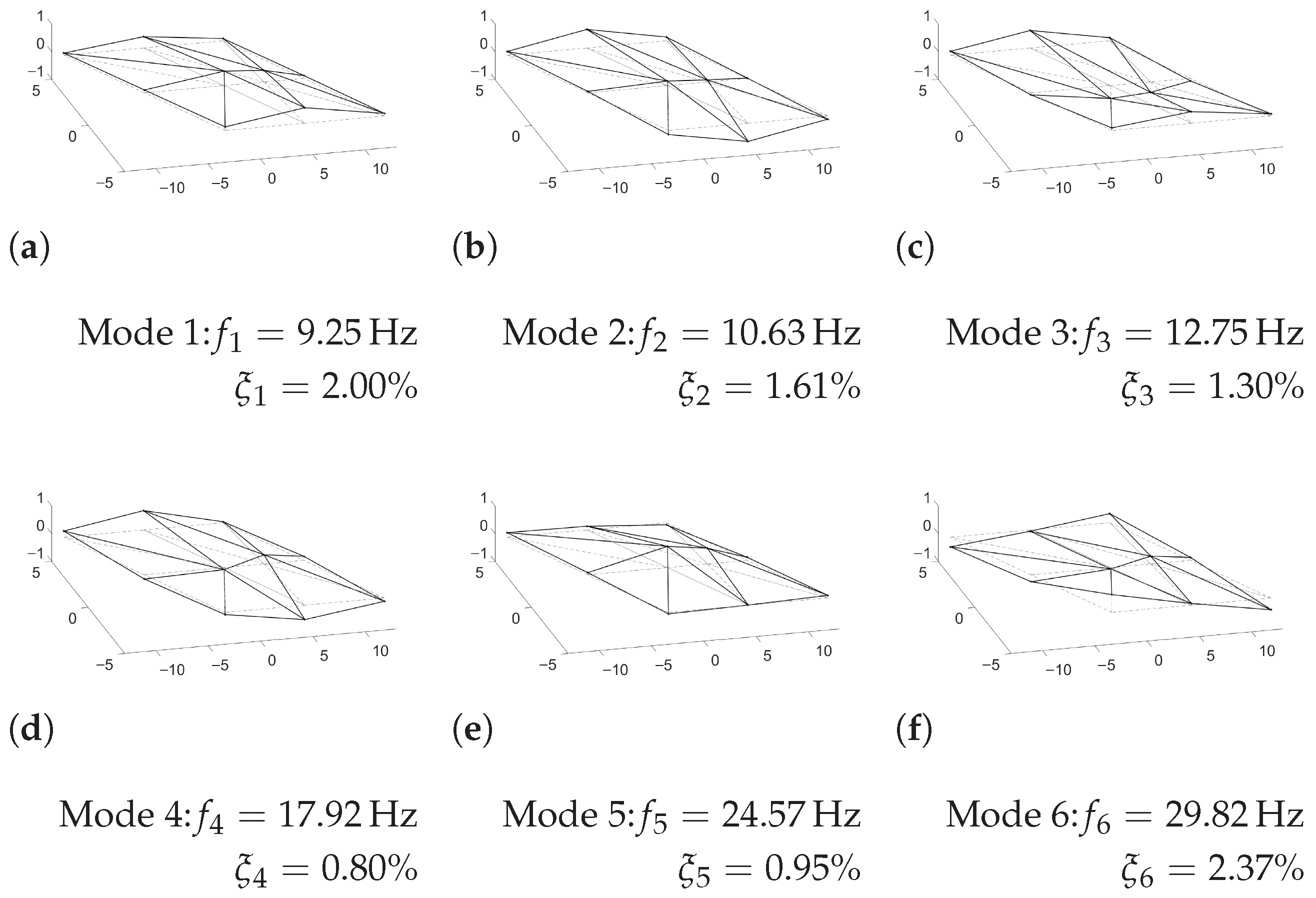 Figure 14a). These modes were obtained from the stabilization diagram analyzed in [