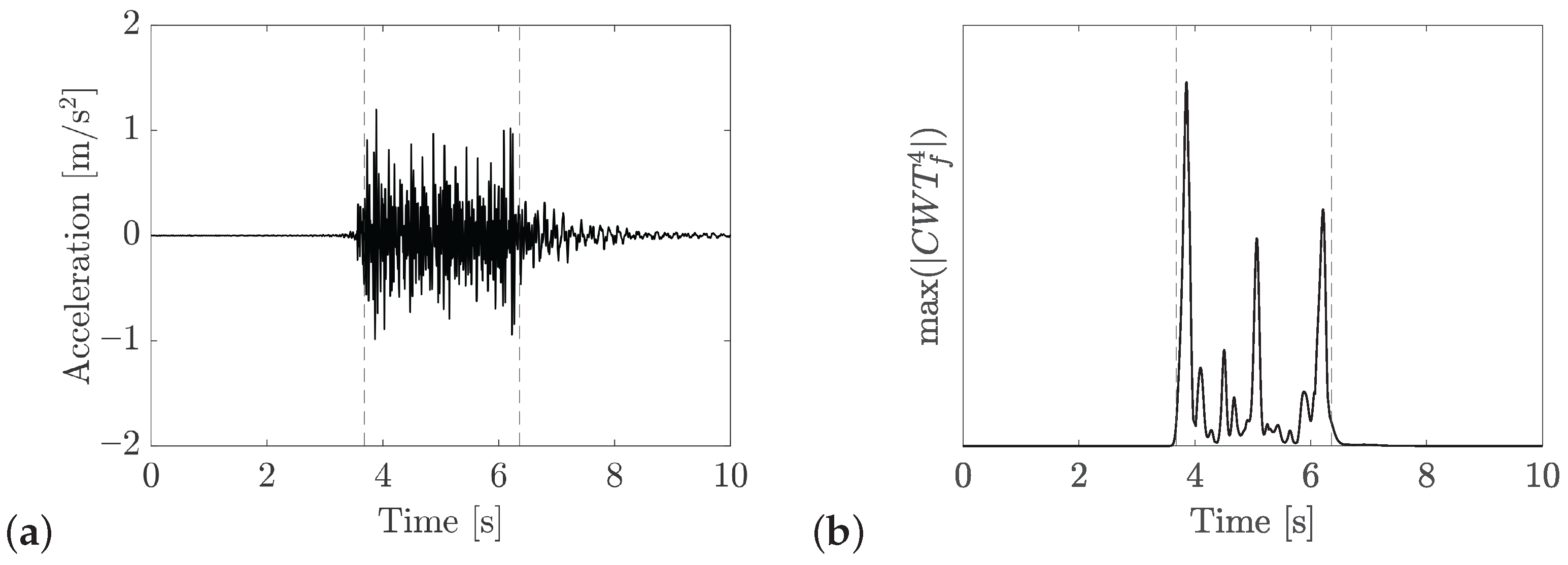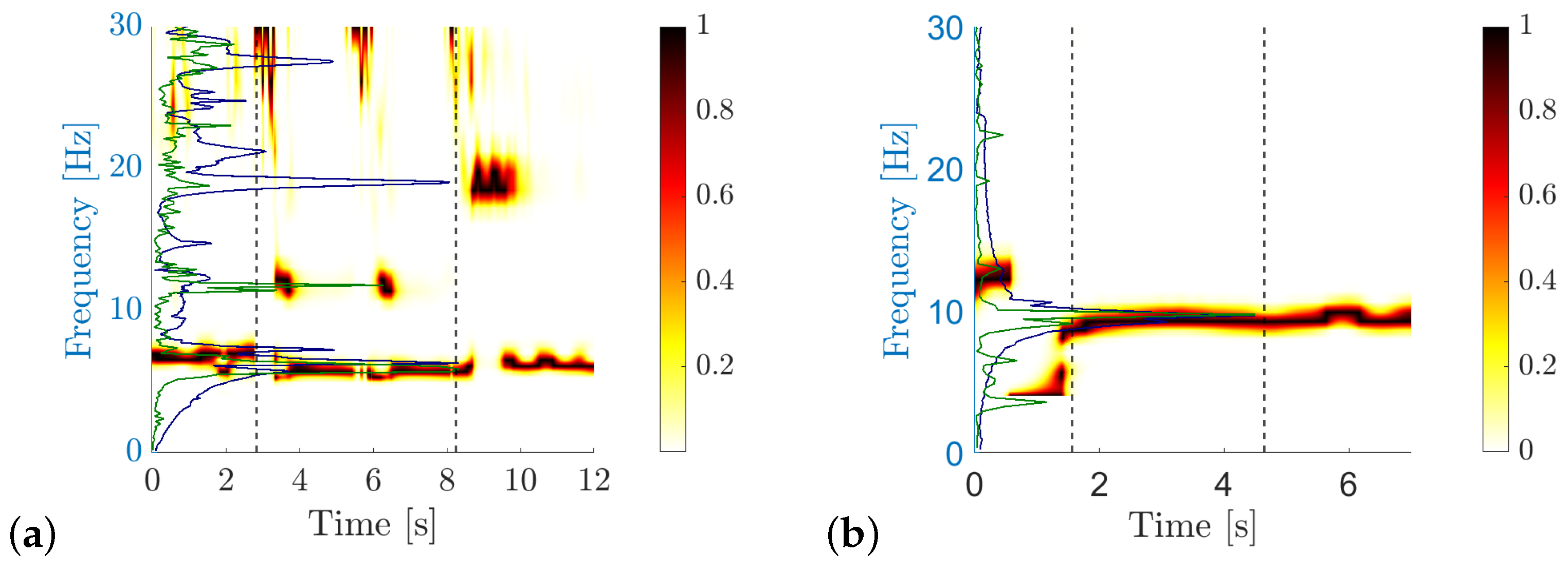15]). This mathematical tool enables the capture of the temporal evolution of frequency contributions to the structural response during train passages, i.e., when the train is on the bridge and after it leaves. More recent works have also applied this technique to detect the non-stationary variations in the bridge vibrations [