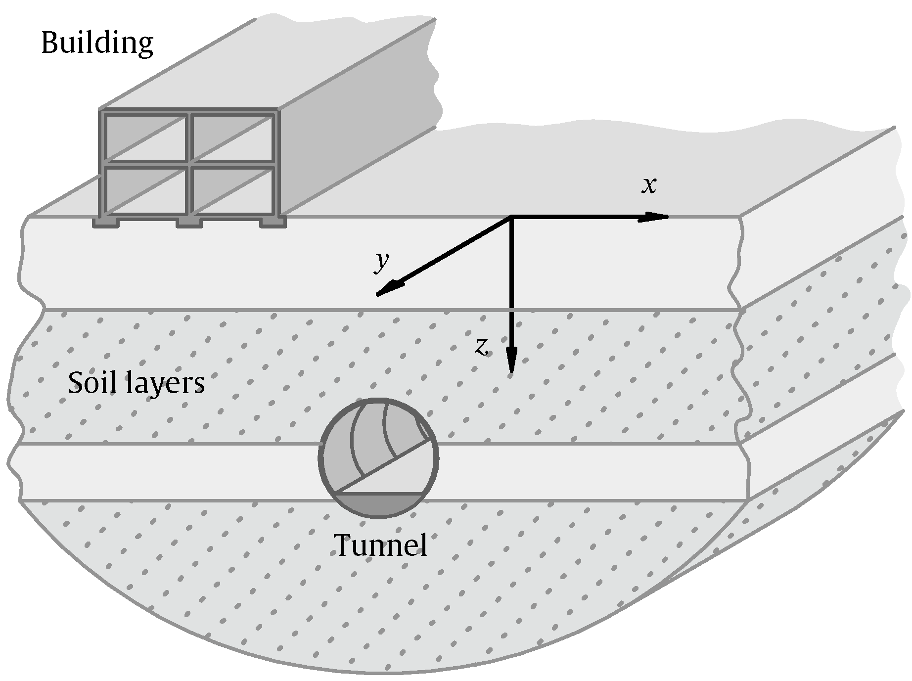 | Tunnel track: Vibrations are generated and transmitted directly into the surrounding soil mass. | |||