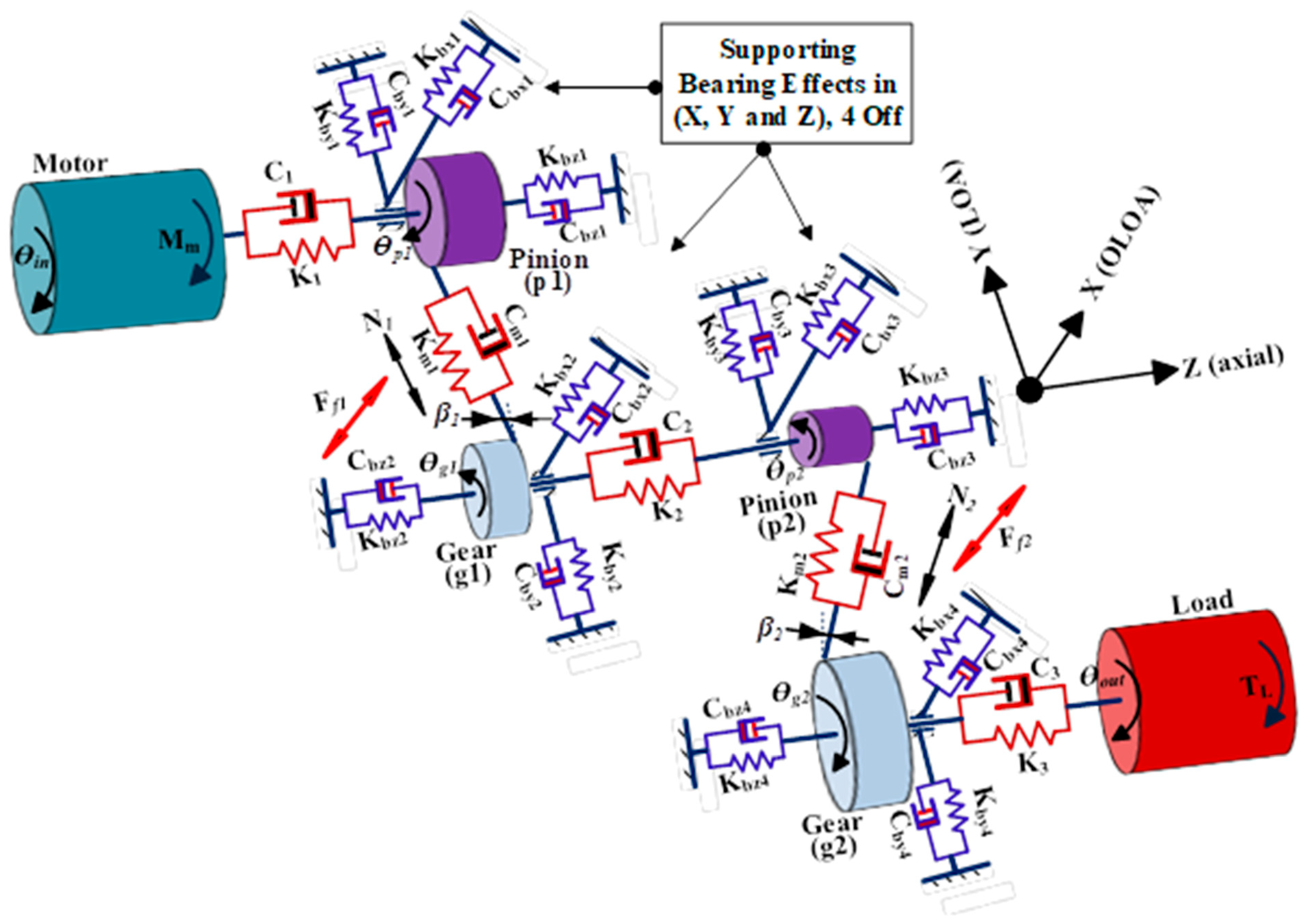 - Liao, F.L.; Lu, H.L.; Huang, J.L.; Zhu, W.D. Dynamic characteristics of helical-gear systems considering axial mesh force component. Int. J. Mech. Sci. 2025, 304, 110628. [Google Scholar] [CrossRef]