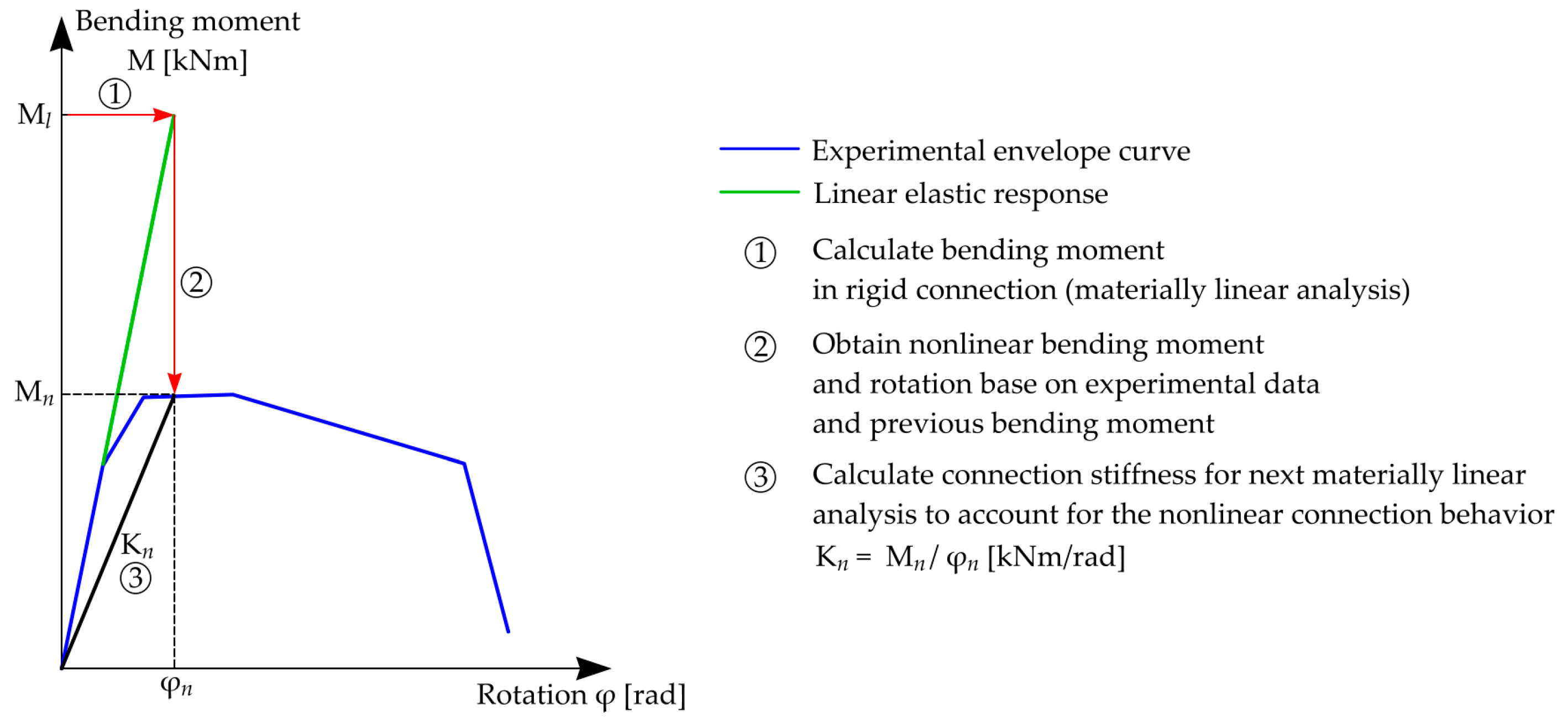 | Ml [kNm] | Mn [kNm] | φn [rad] | Kn [kNm/rad] | |