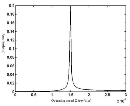 Likewise, by and subtracting j× in the second equation from the first, the rotor amplitude is calculated [19]. In addition, to determine the effect of impeller diameter, the various values of this parameter have been considered. To do this procedure, a code in MATLAB software has been written, and the following outputs shown in Figure 6, Figure 7 and Figure 8 have been derived.