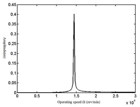 To obtain the critical speed of the rotor, the eigenvalues and thus the natural frequencies of the system must be determined. To do this, a slightly different but equivalent approach can be used to combine the pair in Equation (29). By letting and subtracting j× in the second Equation (29) from the first Equation (29), we have [19]: