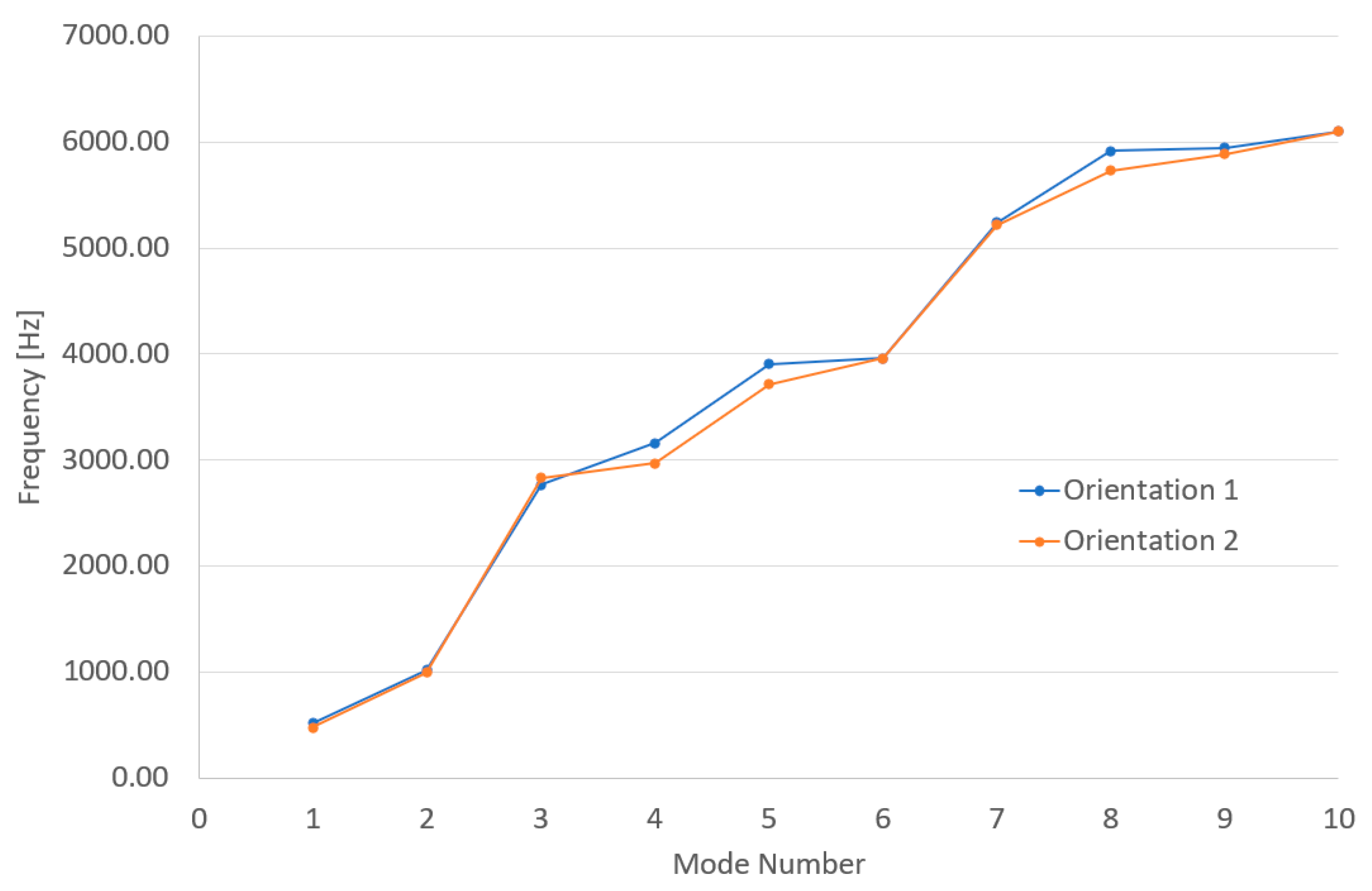 | MODE | Orientation 1 [Hz] | Orientation 2 [Hz] |