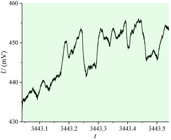 Figure 13 plots the typical instantaneous contact voltage drop of silver coating contact pairs in the melting status. As shown, the contact voltage drop still shows an overall fluctuating upward trend: the upward process is sometimes gradual and sometimes steep, while the downward process is characterized by sharp drops. It should be noted that the variation in the contact voltage drop has no obvious correlation with the frequency of external vibration. For the contact interface in a molten state, prolonged high temperatures can accelerate material oxidation. Thus, if the oxide generated in the interface molten pool has excessively high resistivity, it may cause an open circuit failure.