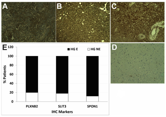 3.1. Human Protein Expressions for PLXNB2, SLIT3, or SPON1: Immunohistochemistry (IHC)
