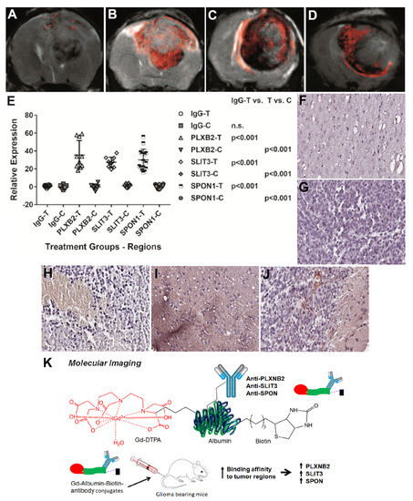 3.3. Mouse GL261 Protein Expressions for PLXNB2, SLIT3, or SPON1: Molecular-Targeted MRI