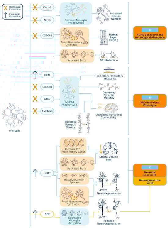 - Lukens, J.R.; Eyo, U.B. Microglia and Neurodevelopmental Disorders. Annu. Rev. Neurosci. 2022, 45, 425–445. [Google Scholar] [CrossRef] [PubMed]