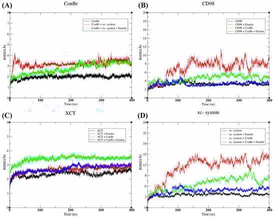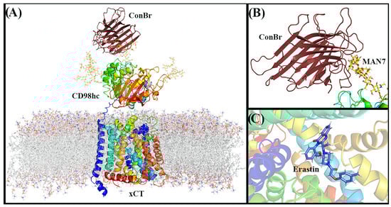 2.6. Molecular Docking of ConBr with N-glycans Present in CD98hc and Construction of the ConBr-Xc- System Complex