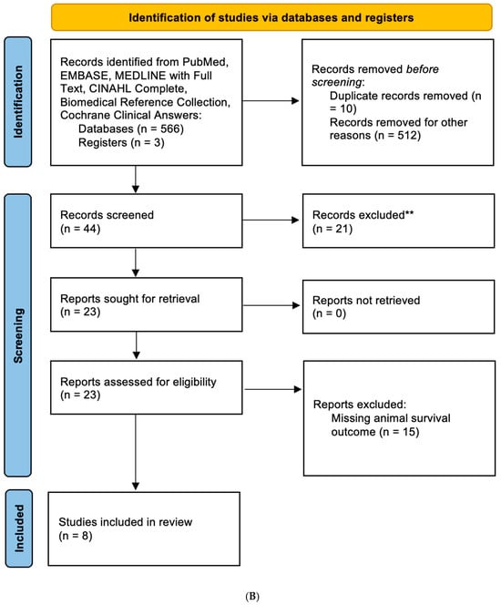 in vivo effects of metformin through GBM cell viability and overall animal survival, respectively. Methods: A systematic review was conducted following the Preferred Reporting Items for Systematic Reviews and Meta-Analyses (PRISMA) guidelines. Data extraction and statistical analyses were performed using Microsoft Excel, and R. Effect sizes were calculated as standard mean differences (SMDs) for
