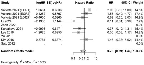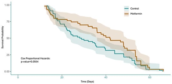 p-value = 0.055). A random-effects model for overall survival supports this pooled analysis (HR [95% CI]: 0.76 [0.39, 1.46]). Additionally, metformin also showed a reduction in cell viability (SMD [CI]; 2.27 [0.79, 3.75]) and an increase in overall animal survival (HR [CI], 0.23 [0.12, 0.45]) when it was added as an adjuvant to traditional GBM therapies. Conclusions: Our findings from