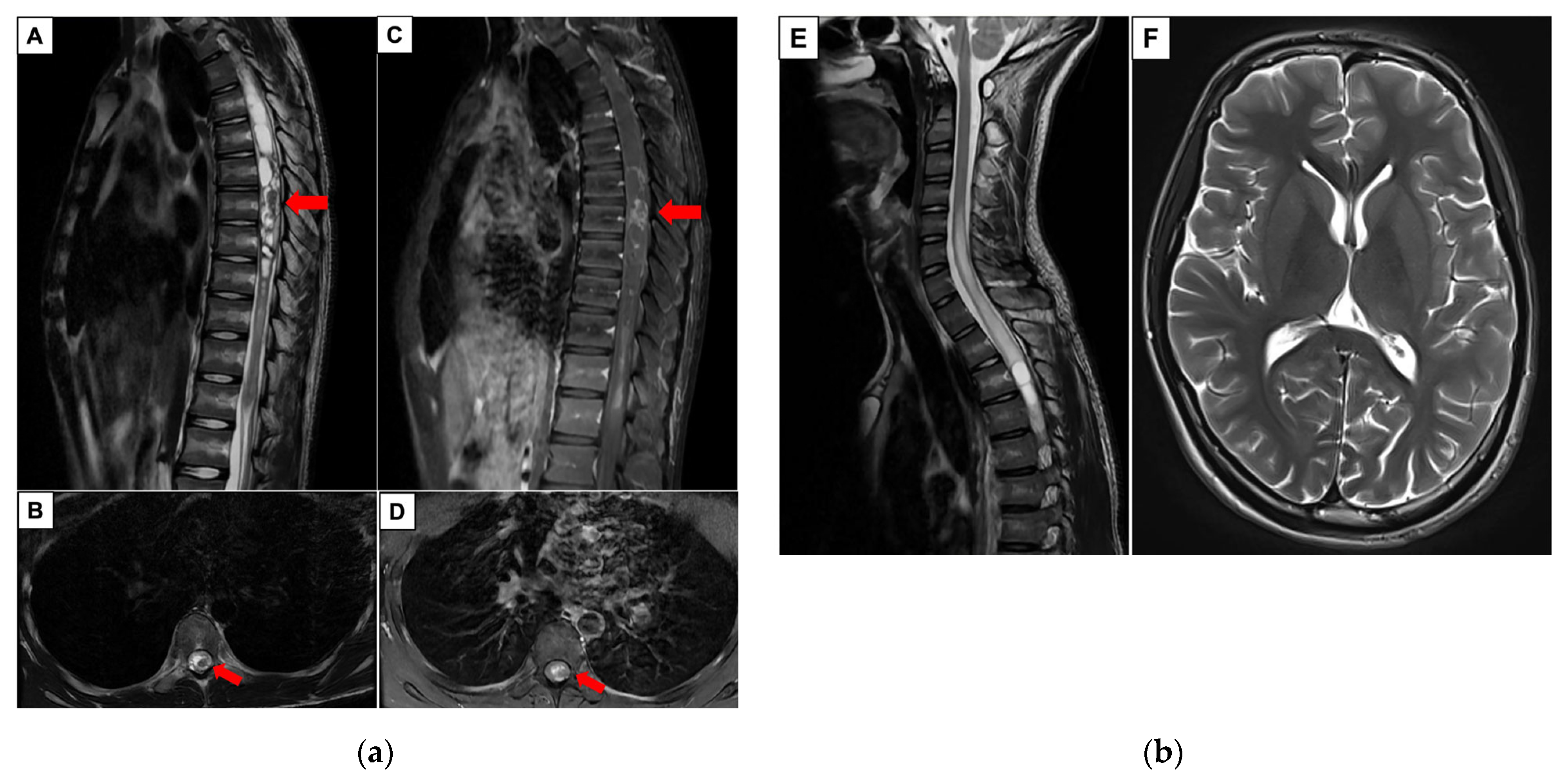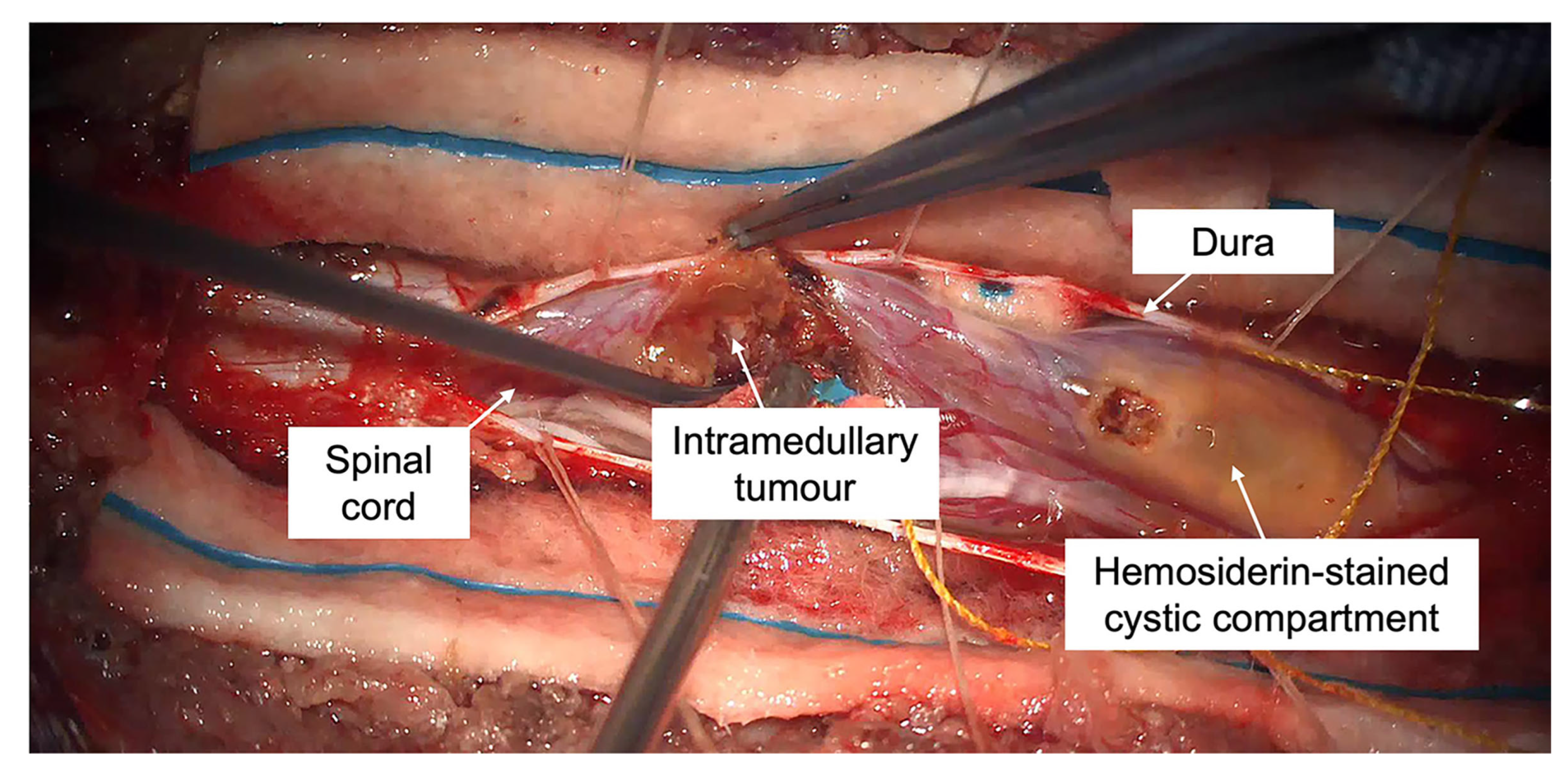 - Catran, A.J.; Jalil, M.F.A. Haemorrhagic intramedullary spinal cord lesion. J. Clin. Neurosci. 2018, 48, 85. [Google Scholar] [CrossRef]