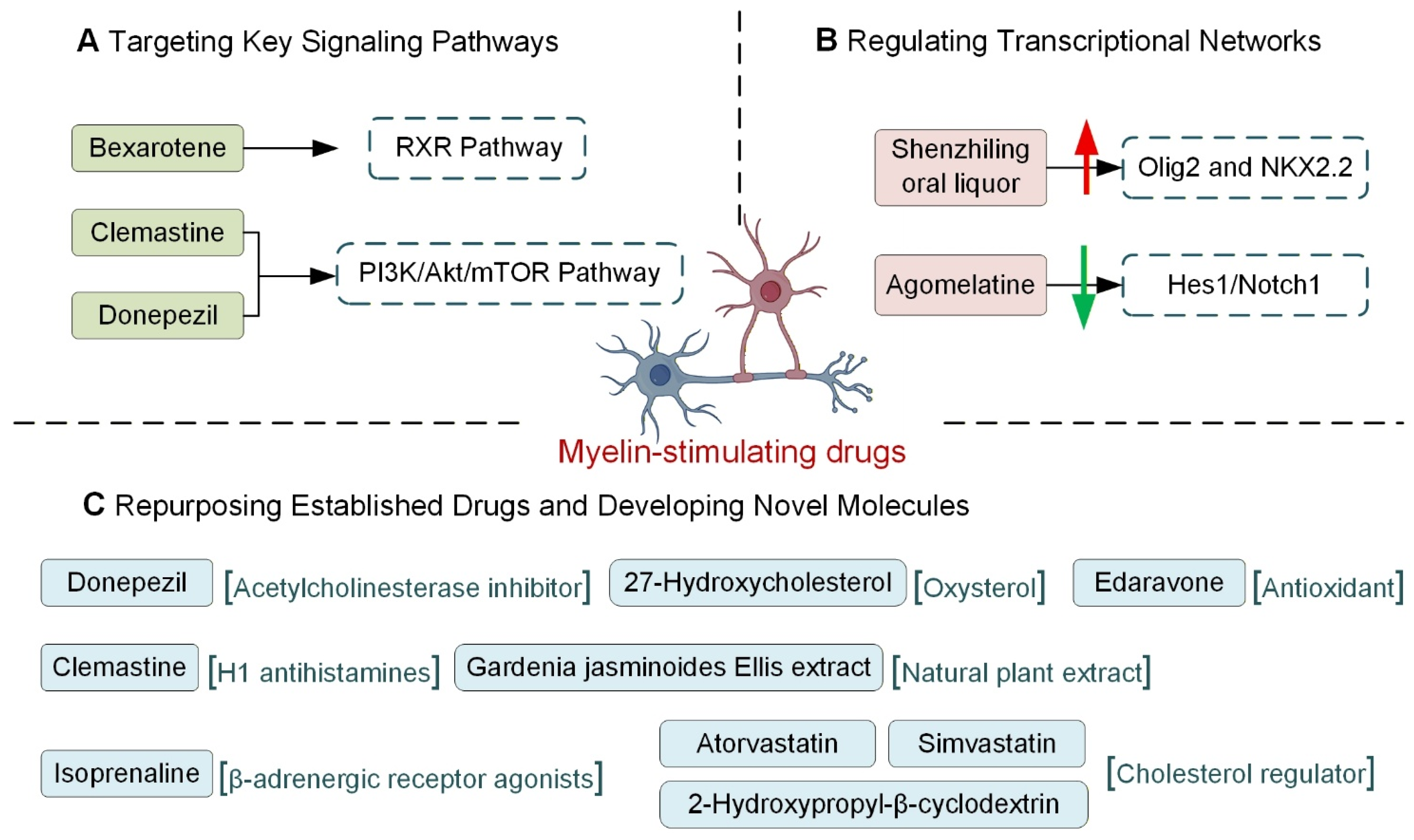- Cui, X.; Guo, Y.E.; Fang, J.H.; Shi, C.J.; Suo, N.; Zhang, R.; Xie, X. Donepezil, a drug for Alzheimer’s disease, promotes oligodendrocyte generation and remyelination. Acta Pharmacol. Sin. 2019, 40, 1386–1393. [Google Scholar] [CrossRef]